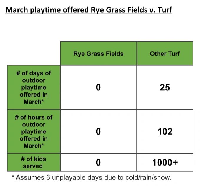 The lack of available, durable field space in Rye is not a new problem. Our community has been challenged with this issue for years while other communities in Westchester & Fairfield counties continue to provide more available space for their kids to play.